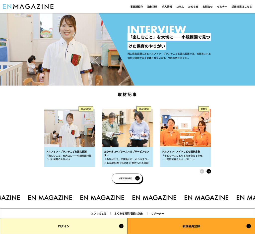 エンマガジンとは、EN株式会社様が運営する、医療・介護業界に特化した事業所情報・求人サイトです。
